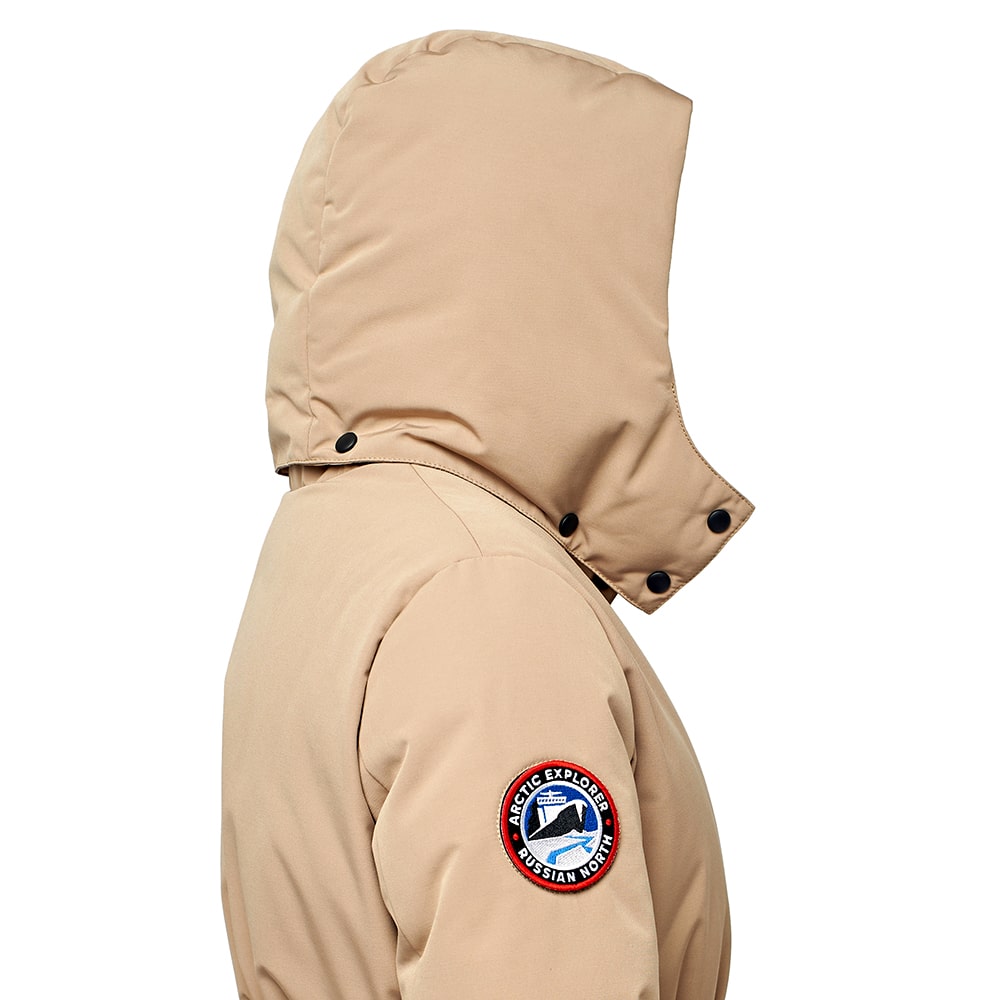 - декор: съемный шеврон «Аrctic Explorer» на рукаве пальто, пуллеры из натуральной кожи.